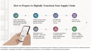 Para planejar uma transformação digital da cadeia de suprimentos, as empresas precisam elaborar um plano de vários anos que inclua a adesão das partes interessadas, a unificação dos dados, a automatização de processos, o uso de análises e o treinamento dos funcionários.